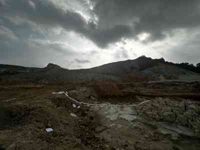 臺州市路橋區峰江街道西山廢棄礦山生態修復工程建筑用石料(花崗巖)礦原來設立的排土場總庫容3.63萬m3,現堆土場已堆存土、濾泥約1.6萬m3,剩余可堆放量約2萬m3。礦山年產濾泥約105.6萬噸(按目前生產規模計算)遠遠大于現排土場剩余堆放量。原堆土場已無法容納礦山剝離土和礦石加工時產生的大量濾泥(濾餅)。通過現場調查,為解決濾泥出路,對原排土場進行擴建,排放制砂產生的濾泥。
